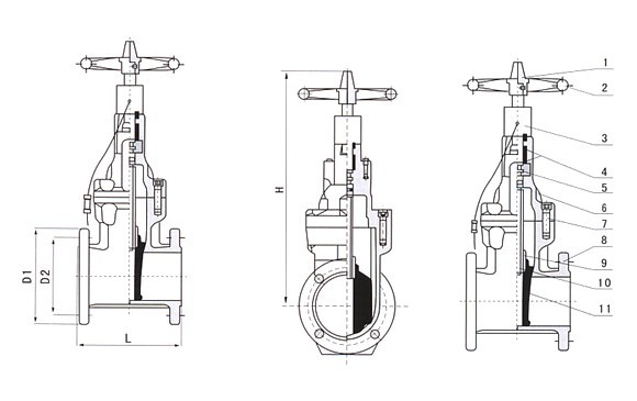 | 11 | 阀瓣 | 球墨铸铁+三元乙丙或丁腈橡胶 |